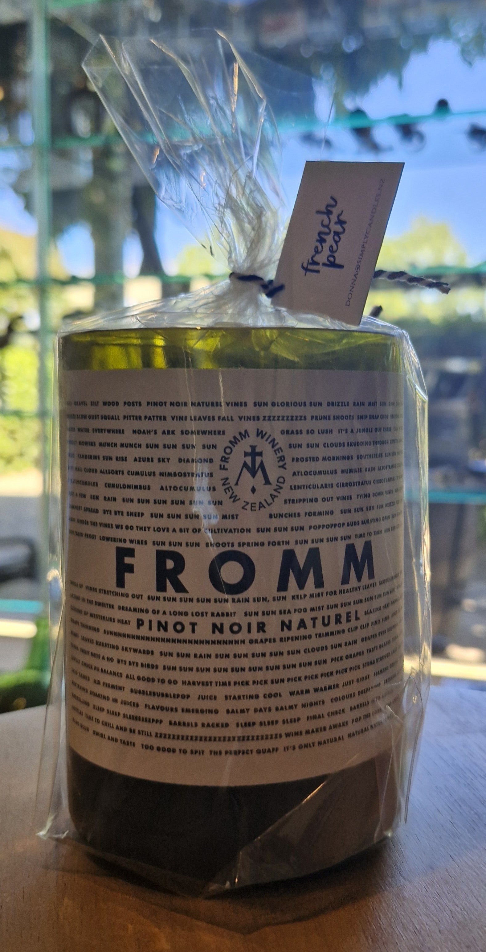 We make our candles in pre-loved wine bottles given to us by FROMM Winery who are as committed to sustainablity as we are.