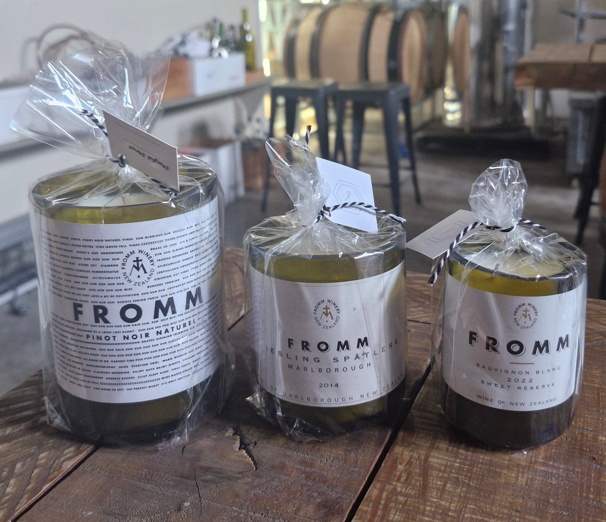 We make our candles in pre-loved wine bottles given to us by FROMM Winery who are as committed to sustainablity as we are.